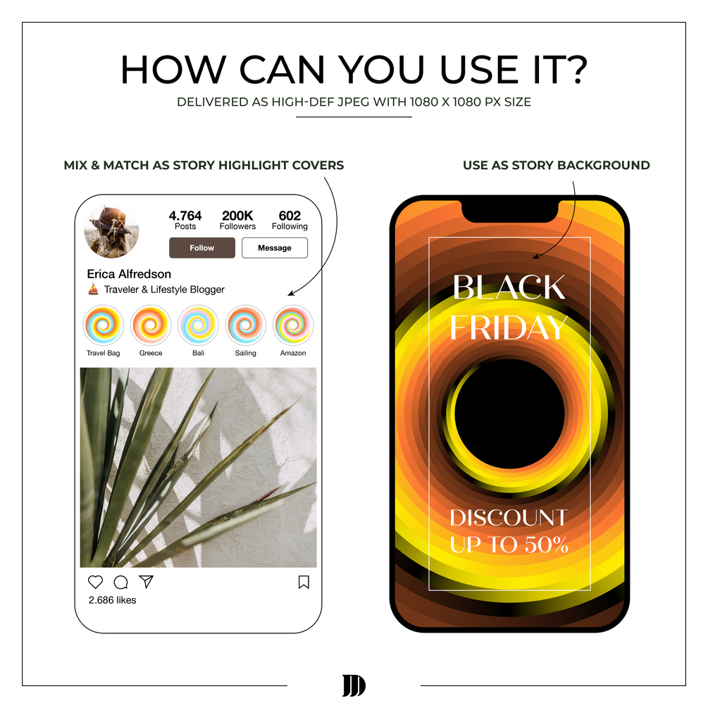 You will receive 20 Highlight covers in High-Def JPEG format. You can use them as story highlight covers or as story backgrounds.